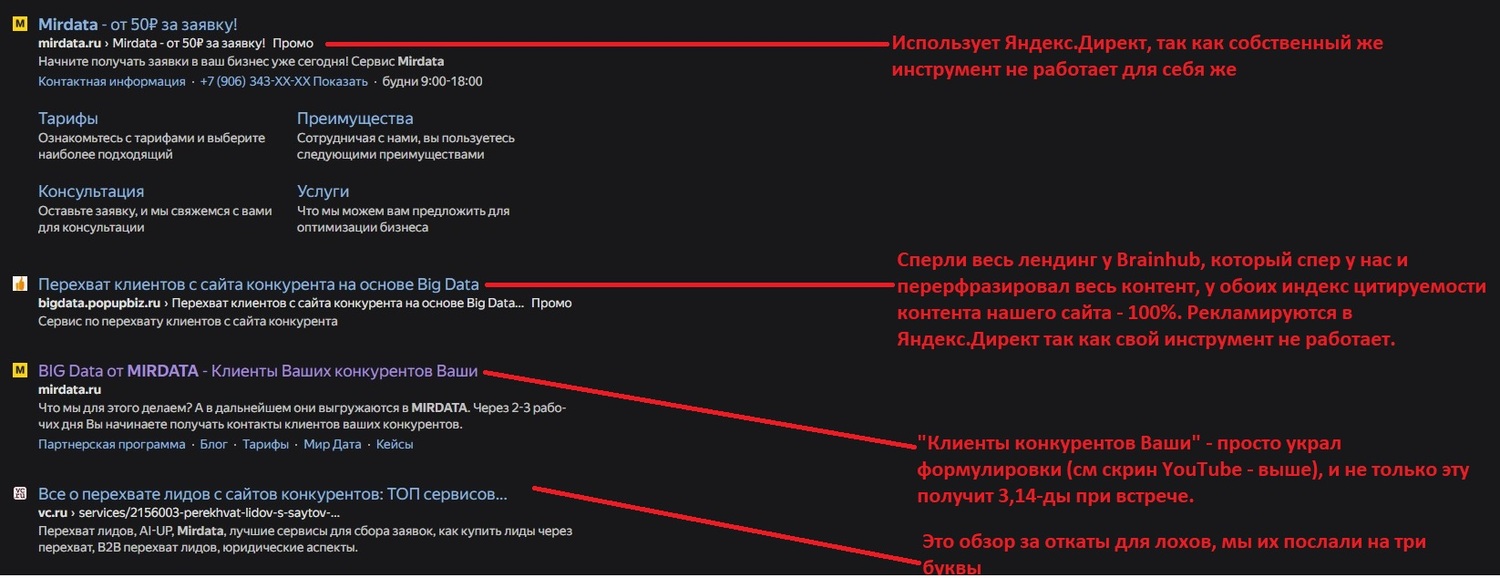 ОСТАЛЬНЫЕ КОМПАНИИ ВЫШЛИ НА РЫНОК В СРЕДНЕМ ЛЕТ НА 5 ПОЗЖЕ НАС И РАБОТАЮТ ПО БОЛЕЕ ПРИМИТИВНОЙ ТЕХНОЛОГИИ ПЕРЕХВАТА, С НЕТОЧНЫМ ОПРЕДЕЛЕНИЕМ КЛИЕНТОВ, ЕЩЕ И С НАРУШЕНИЕМ РЯДА ЗАКОНОВ И ПОДСТАВЛЯЮТ ПОКУПАТЕЛЕЙ НОМЕРОВ НА ШТРАФЫ ДО 1 МИЛЛИОНА РУБЛЕЙ ЗА КАЖДЫЙ НЕЗАКОННЫЙ ЗВОНОК ПЕРЕХВАЧЕННОМУ КЛИЕНТУ. У НАС - ПОЛНОСТЬЮ ИНАЯ ТЕХНОЛОГИЯ.